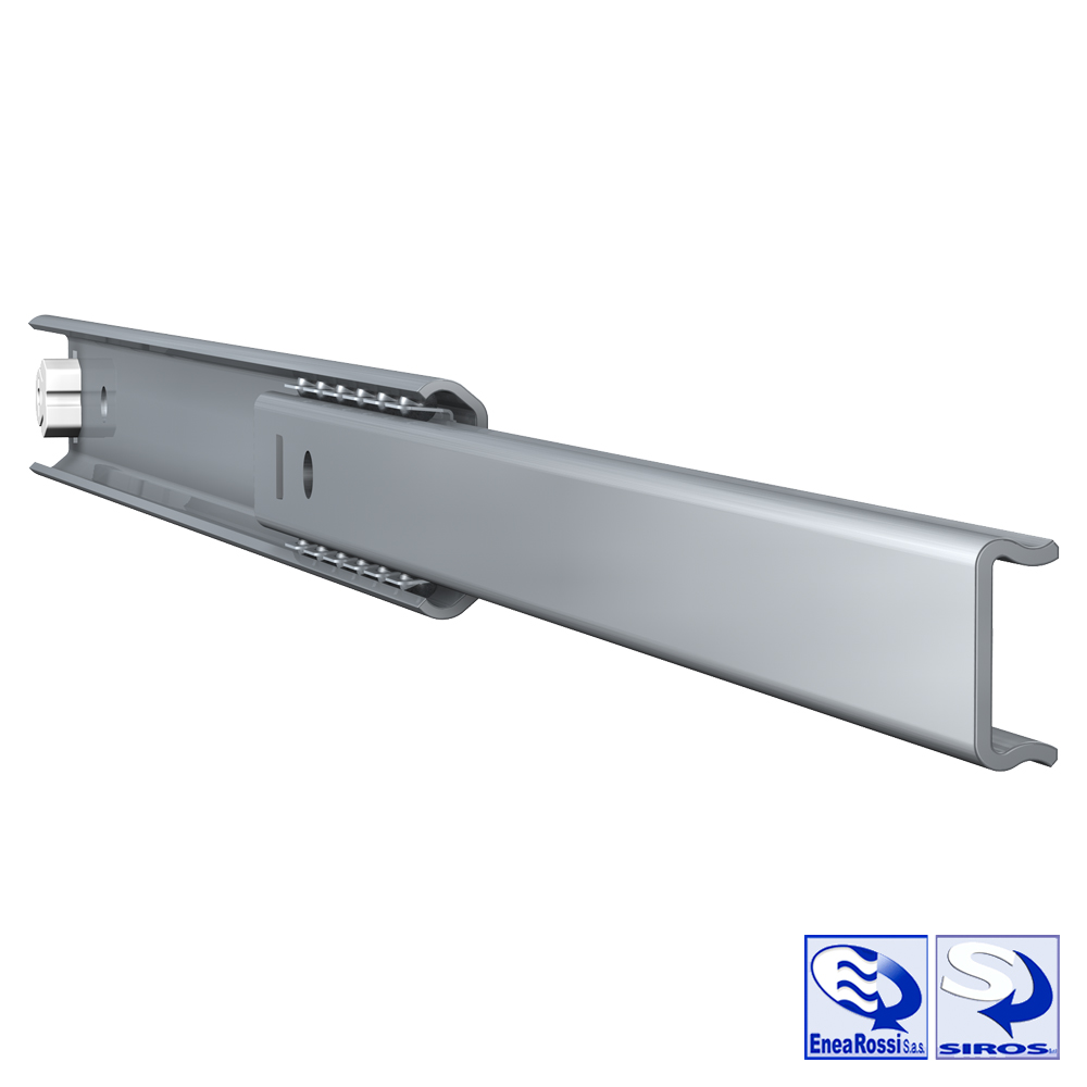 Guida telescopica a sfere a due stadi in lamiera trafilata a freddo. Questa guida a estensione singola con SOFT STOP supporta carichi fino a 78 kg (172 lbs), rendendola ideale anche per i settori automotive e industriale.