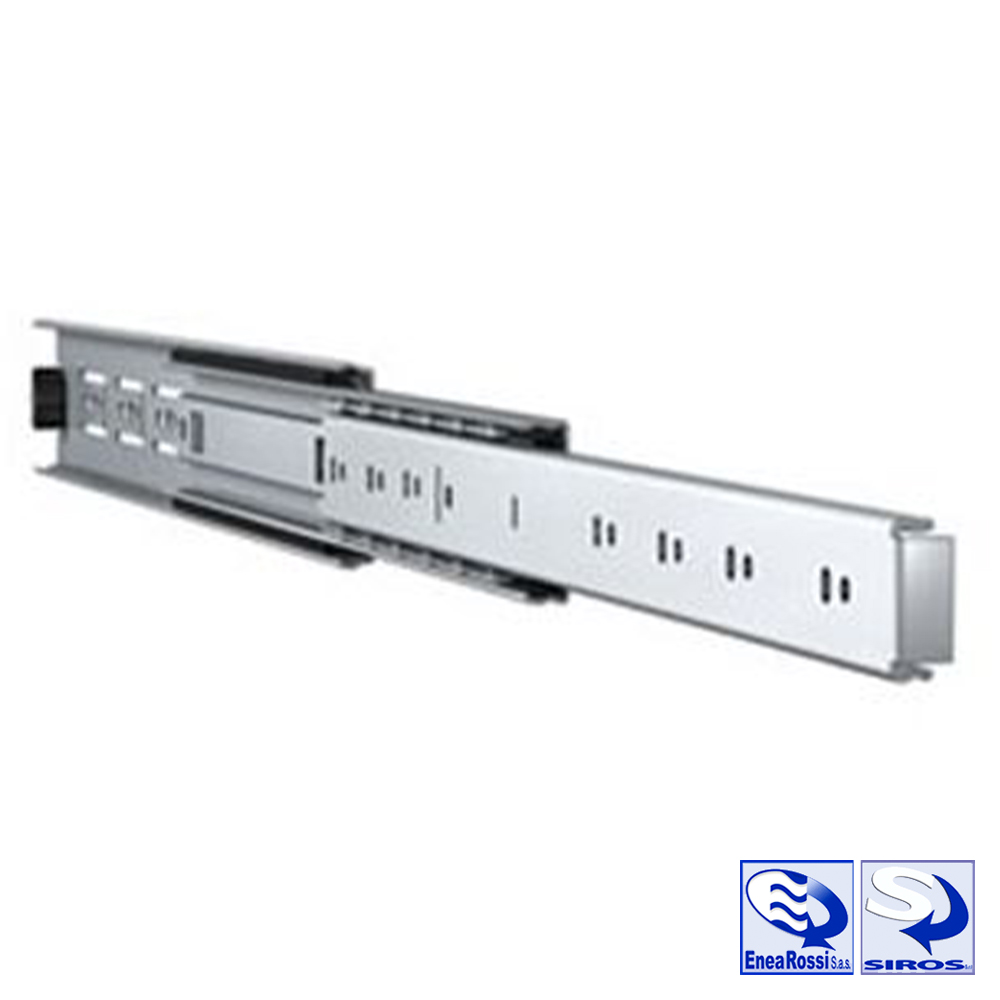 Hanno una portata fino a 45 kg per coppia, una lunghezza chiusa di 500 mm e una corsa di 508 mm, questo modello è ideale per sistemi di stoccaggio professionale, cassetti e ripiani estraibili in cucine industriali, arredi commerciali e allestimenti tecnici.